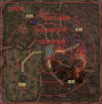 Starting from level 50, you can farm at Montanus Floor 4 (don't know why it gives more experience than Kaineus) until level 60, then go to Castle Unos (entered at level 60), and then Ma-Dravas. Farm these maps until level 75. At level 75, you can go to Devil's Playground. The monster distribution in Devil's Playground is impressive, with monsters from level 75 to 125. The picture below shows the approximate distribution of monsters.