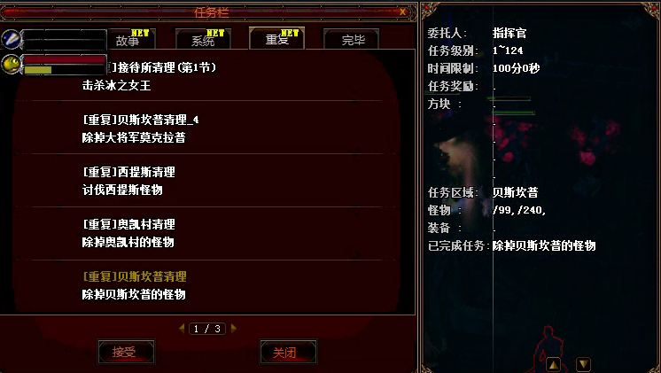 3. RepeatableThe repeatable quest line mainly displays some quests that can be repeated. These repeatable quests are usually triggered only after completing the story quests. Repeatable quests are mainly for leveling up, because each time you complete the quest, you will get additional high experience.