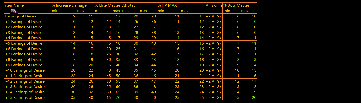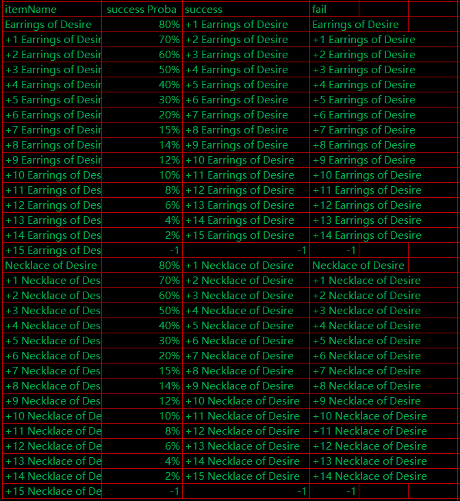 Earrings of Desire=Fragments of Desire *10 + moonlight crystal *1 + blood crystal *2 + Craft Stone