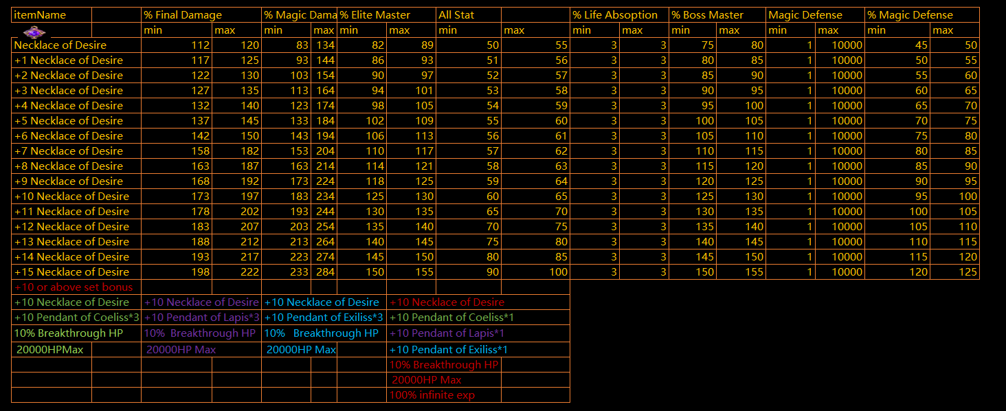 necklace of Desires= Fragments of Desire *10 + moonlight crystal *2 + blood crystal *1+ Craft Stone
