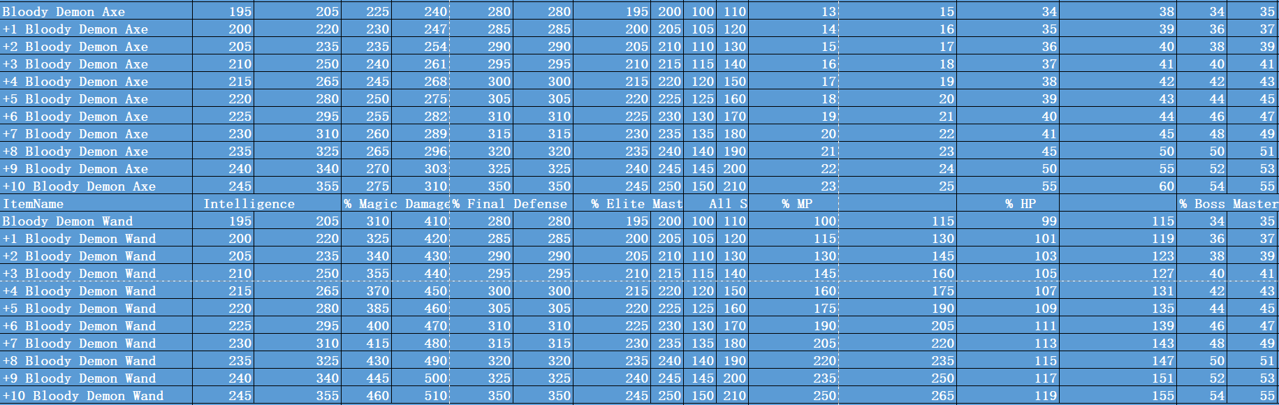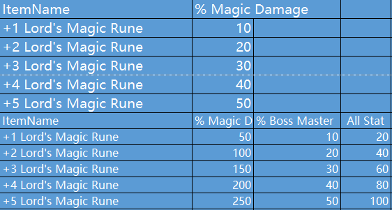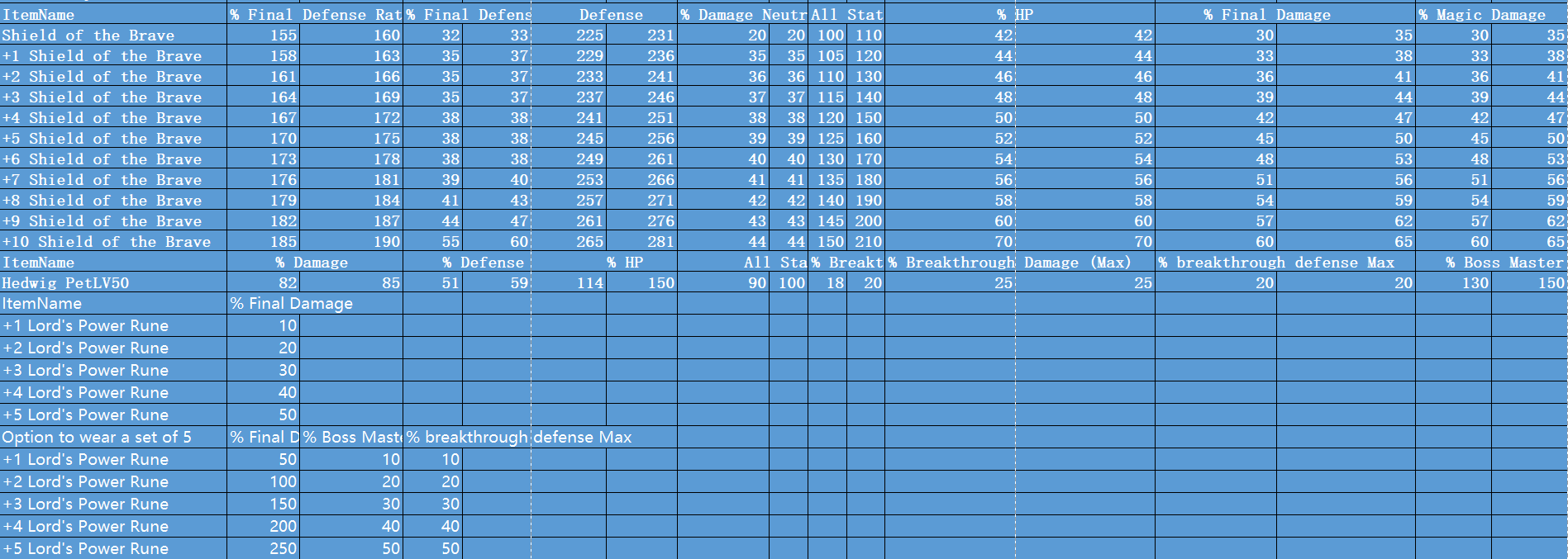 Bloody Demon Weapon, Shield of the Brave, Lord's Power Rune, Lord's Magic Rune, Hedwig Pet LV50 Option Introduction
